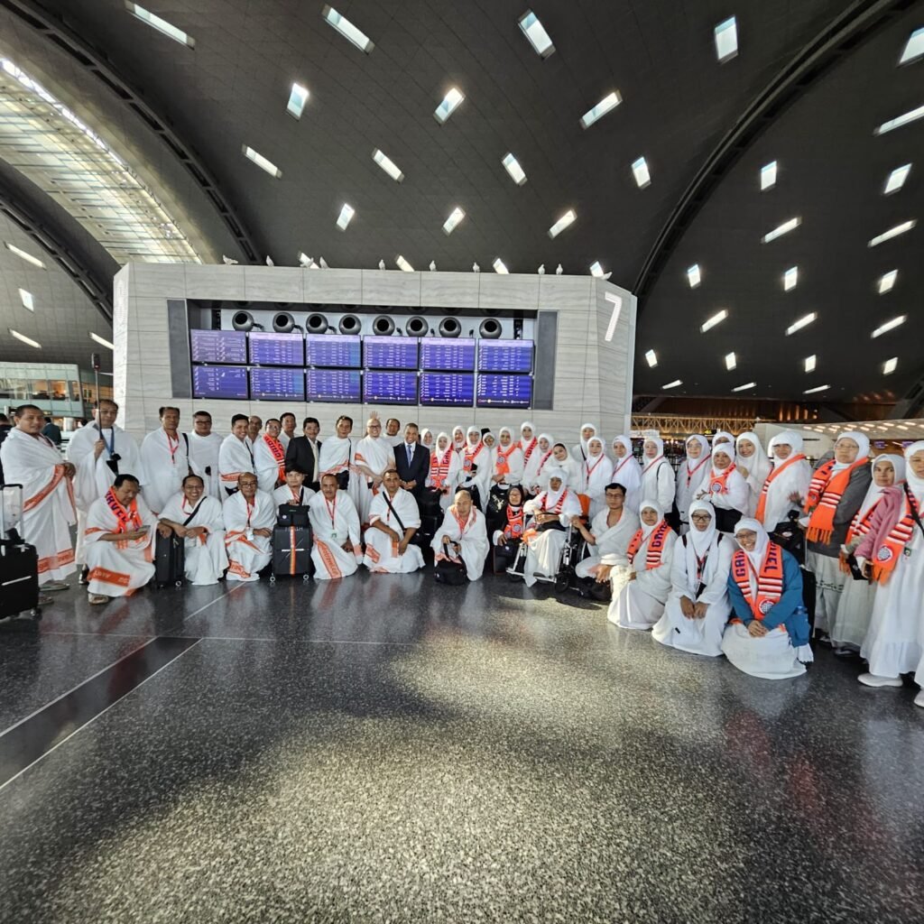 Duta besar Indonesia untuk Qatar YM Ridwan Hasan Lepas Jemaah Haji Gaido Travel di bandara Doha Qatar dengan penerbangan QR 1188 tujuan jeddah dan akan langsung ke Makkah untuk melakukan ibadah Haji,
